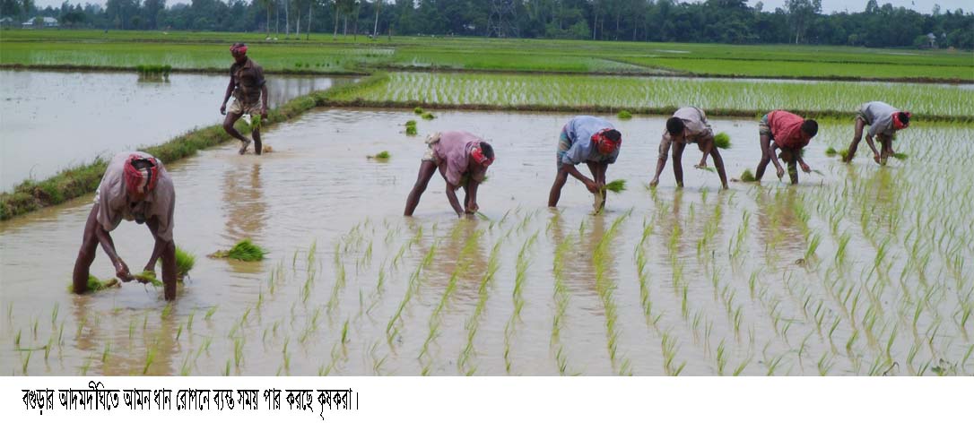 কৃষি অফিস সুত্রে জানাযায়, বগুড়ার আদমদীঘি উপজেলায় ৬ টি ইউনিয়ন ১টি পৌরসভায় চলতি মৌসুমে ১২ হাজার ৩ শত হেক্টর জমিতে আমন ধান আবাদের লক্ষমাত্রা ধরা হয়েছে। জিনইর গ্রামের কৃষক ফেরদৌস আলী শালগ্রামের নজরুল ইসলাম সহ বেশ কয়েকজন কৃষক জানায়, গত চলতি বছরে আকাশের বৃষ্টি পাওয়ায় সময় মতো জমিতে হাল দিয়ে জমি তৈরী করে প্রয়োজন মতো সার বীজ বাজার থেকে ক্রয় করে এবার আমন ধানের চারা রোপন করতে কোন সমস্য হচ্ছে না। ভোর হলেই কৃষকরা ছুটছেন মাঠের দিকে। ভাটিয়ালী ভাওয়াইয়া গানের সুরে সুরে মনের আনন্দে কাজ করছে তারা।