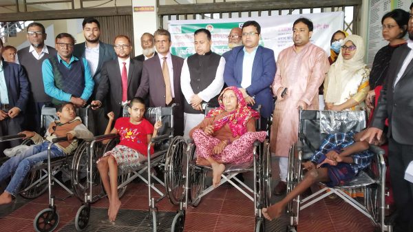 পরে দূরারোগ্য ব্যধীতে আক্রান্ত ১৫ জন ব্যক্তিকে ৫০ হাজার টাকার চেক এবং ১৫ জন প্রতিবন্ধি ব্যক্তিকে ১টি করে ১৫টি হুইল চেয়ার বিতরণ করা হয়।