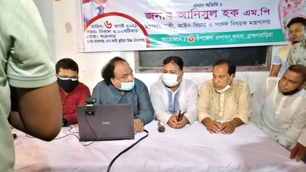 মূলগ্রাম ইউনিয়ন পরিষদ চেয়াম্যান মাইনুল হোসেনের সভাপতিত্বে আইন মন্ত্রী আনিসুল হক প্রধান অতিথি হিসেবে ভিডিও কনফারেন্সের মাধ্যমে এই খাদ্য সামগ্রী বিতরণ কার্যক্রম উদ্বোধন করেন। এসময় কসবা উপজেলা পরিষদ চেয়ারম্যান এডভোকেট রাশেদুল কাইছার ভূইয়া, উপজেলা আওয়ামীলীগ যুগ্ন আহবায়ক এম.জি হাক্কানী, রুহুল আমিন ভূইয়া বকুল, কসবা পৌরসভার মেয়র এমরান উদ্দিন, কসবা উপজেলা পরিষদ ভাইস চেয়ারম্যান মনির হোসেন, উপজেলা ছাত্রলীগ যুগ্ন আহবায়ক কাজী মানিক উপস্থিত ছিলেন।