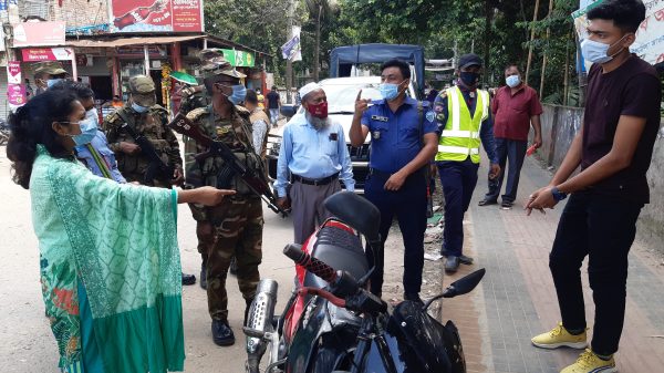 ব্রাহ্মণবাড়িয়ার কসবায় মহামারী করোনা সংক্রমণ প্রতিদিনই বাড়ছে। কসবা পৌর এলাকাসহ উপজেলার ১০টি ইউনিয়নের প্রতিটি গ্রামে করোনা সংক্রমণ বাড়লেও সাধারণ মানুষের মধ্যে এ বিষয়ে সচেতনতা সেইরকম লক্ষ করা যাচ্ছে না। করোনা সংক্রমণ রোধে জনসচেতনতার জন্য প্রশাসন, সেনাসদস্য, পুলিশ ও স্কাউট সদস্যদের তৎপরতা লক্ষনীয়। কিন্তু অধিকাংশ মানুষ লকডাউন বিধিনিষেধ ও স্বাস্থ্যবিধি উপেক্ষা করে হাটে-বাজারে চলাফেরা করছেন। অধিকাংশ ব্যবসা প্রতিষ্ঠান খোলা দেখা যায়। প্রশাসনের লোকজনদের দেখলে দোকানীরা সাটার বন্ধ করে দেয়। প্রশাসনের লোকজন চলে গেলে আবার দোকান খুলে ফেলেন। তাছাড়া প্রশাসনের লোকজনদের দেখলে সাধারণ মানুষ তড়িঘড়ি করে মুখে মাস্ক পড়ে নানা অজুহাতে ঘোরাফেরা করছেন। আজ বৃহস্পতিবার সকাল ১০টা থেকে দুপুর ১টা পর্যন্ত উপজেলা সদরের গুরুত্বপূর্ণ সড়কে ভ্রাম্যমান আদালত পরিচালনা করে লকডাউন বিধিনিষেধ ও স্বাস্থ্যবিধি অমান্য করায় পাঁচ ব্যক্তিকে ৪ হাজার ৫০০ টাকা জরিমানা ও পাঁচ ব্যক্তির বিরুদ্ধে মামলা করা হয়। ভ্রাম্যমান আদালত পরিচালনা করেন উপজেলা সহকারী কমিশনার (ভূমি) ও নির্বাহী হাকিম হাছিবা খান। এসময় সেনাসদস্য, পুলিশ, স্কাউট ও প্রশাসনের লোকজন তাকে সহায়তা করেন। আজ বৃহস্পতিবার দুপুরে উপজেলা সহকারী কমিশনার (ভূমি) ও নির্বাহী হাকিম হাছিবা খান জানান, প্রতিদিনই জনসচেতনা বৃদ্ধি ও স্বাস্থ্যবিধি মেনে চলার জন্য প্রশাসনের পক্ষ থেকে মাস্ক বিতরণ করাসহ জনগণকে উদ্বুদ্ধ করা হলেও তা অধিকাংশ জনগণ মানছেন না। আজ বৃহস্পতিবার লকডাউন বিধিনিষেধ ও স্বাস্থ্যবিধি অমান্য করে হেলমেটবিহীন মোটরসাইকেল চালানোর অপরাধে ও মাস্কবিহীন অবস্থায় পিকআপ ও ট্রাক্টর চালানোর অপরাধে পাঁচ ব্যক্তিকে ৪ হাজার ৫০০ টাকা জরিমানা করা হয়।