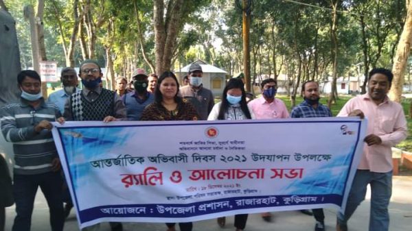সামনে রেখে রাজারহাট উপজেলায় আজ ‘আন্তর্জাতিক অভিবাসী দিবস-২০২১ পালিত হয়েছে। এ উপলক্ষে সকালে উপজেলা পরিষদের প্রধান গেট থেকে একটি র্যালি বের হয়ে শহরের প্রধান প্রধান রাস্তা প্রদক্ষিণ করে উপজেলা অফিসার্স ক্লাবে এসে শেষ হয়। এরপর অফিসার্স ক্লাবে আলোচনা সভা অনুষ্ঠিত হয়।আলোচনা সভায় সভাপতিত্ব করেন উপজেলা নির্বাহী অফিসার নুরে তাসনিম।অন্যান্যদের মধ্যে উপজেলা ভূমি কমিশন মোছাঃ আকলিমা বেগম, উপজেলা প্রকৌশলী আবু তাহের মোঃ শফি, উপজেলা ফায়ার সার্ভিস ও সিভিল ডিফেন্স এর সদস্যরা ও বাংলাদেশ রিপোর্টার্স ক্লাব রাজারহাট উপজেলা শাখার সভাপতি আশিকুর রহমান লিমন, সাধারণ সম্পাদক, মোঃ দুলাল মিয়া, সদস্য শরিফুল ইসলাম সজীব ,উপজেলা বিভিন্ন দপ্তরের কর্মকর্তাগণ সহসাংবাদিকবৃন্দ এবং স্থানীয় লোকজন উপস্থিত ছিলেন।