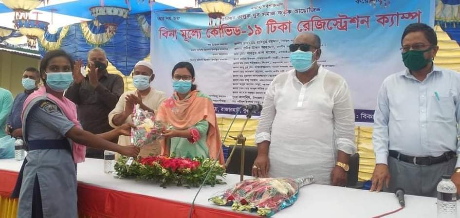 রাজারহাট উপজেলায় বিনামূল্যে কোভিড-১৯ টিকা রেজিষ্ট্রেশন ক্যাম্পের উদ্ধোধন করেছেন কুড়িগ্রামের সিভিল সার্জন ডাঃ মোঃ হাবিবুর রহমান। অনুষ্ঠানে প্রধান অতিথি হিসেবে বক্তৃতা করেন, কুড়িগ্রাম-২আসনের মাননীয় সংসদ সদস্য আলহাজ্ব পনির উদ্দিন আহমেদ । ২৮ জুলাই ২০২১ইং রোজ-বুধবার বিকেলে উপজেলার হরিশ্বর তালুক উচ্চ বিদ্যালয় প্রাঙ্গণে বিনামূল্যে কোভিড-১৯ টিকা রেজিষ্ট্রেশন ক্যাম্পের আয়োজন করেন হরিশ্বর তালুক যুব সমাজ।এতে অন্যান্যদের মধ্যে বক্তব্য দেন, বিশ্ব স্বাস্থ্য সংস্থার এস আই এম ও মাহবুব আল শাহেদ, উপজেলা সহকারী কমিশনার (ভূমি) মোছাঃ আকলিমা বেগম, উপজেলা স্বাস্থ্য ও পঃ পঃ কর্মকর্তা ডাঃ আসাদুজ্জামান জুয়েল, রাজারহাট থানা অফিসার ইনচার্জ রাজু সরকার, উপজেলা জাতীয় পার্টির সভাপতি আলহাজ্ব আমজাদ হোসেন জেলা পরিষদ সদস্য মোঃ আব্দুস ছালাম ও আঃ রহিম বাদশা প্রমুখ।