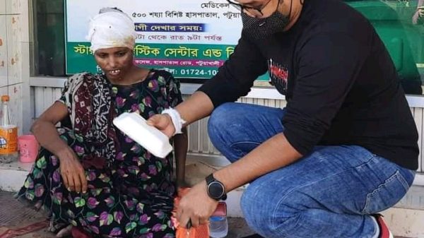 অসুস্থ এই মহিলার খবর জানতে পেরে খাবার নিয়ে ও প্রয়োজনীয় ঔষধ নিয়ে ছুটে আসেন ফোকাস ডায়াগনস্টিক সেন্টারের পরিচালক মানবতার ফেরিওয়ালা মেহেদী হাসান শিবলী।মহিলার মাথার পেছন থেকে পোঁকা বের হওয়ায় অসংখ্য মশা মাছি দেখা যায়।অতিরিক্ত মশা মাছির কারনে অসুস্থ মহিলা আরো বিরক্ত বোধ ও অসুস্থ হয়ে যাচ্ছিল।