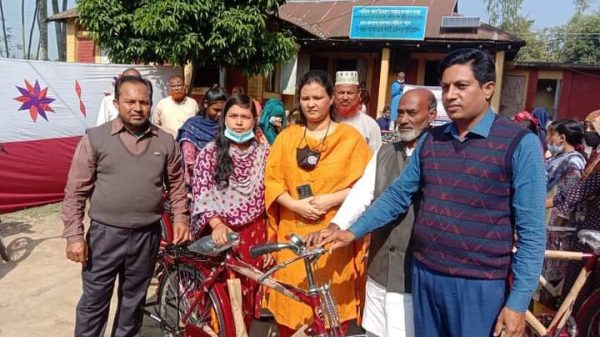 বাংলাদেশ এনজিও ফাউন্ডেশনের অর্থায়নে স্কুলগামী ছাত্রীদের মাঝে বাইসাইকেল বিতরণ