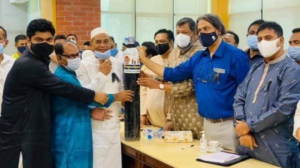 কেন্দ্রীয় যুবলীগের অক্সিজেন সিলিন্ডার হস্তান্তর