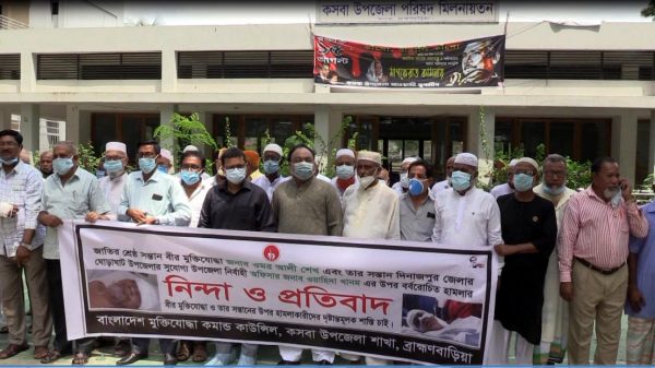 ঘোড়াঘাটের ইউএনও ও তার পিতার উপর হামলার প্রতিবাদে কসবায় মুক্তিযোদ্ধাদের প্রতিবাদ সমাবেশ