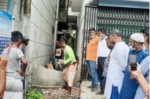 সান্তাহারে গলিপথে নির্মিত প্রাচীর ভেঙে দিলেন পৌর কর্তৃপক্ষ
